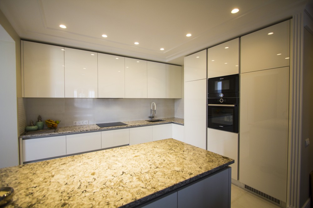 - Кухонные фасады из пластика, пленки, ЛДСП, шпона, каменного шпона, массива, акрила, эмаль и т.д.